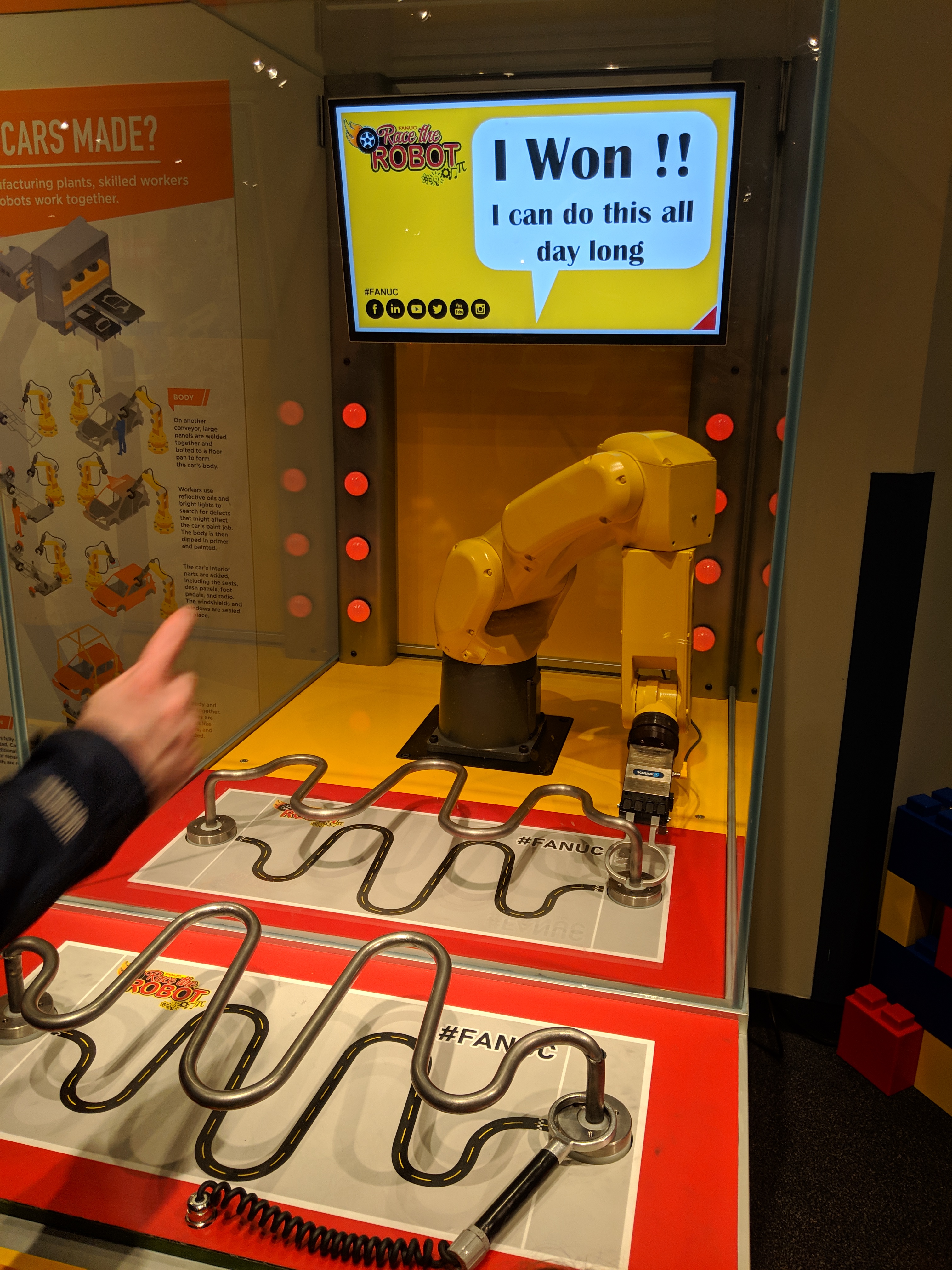 You can also test your skills and speed against an arm robot, named Lenny, which is a duplicate used in the automotive factories. My children laughed so hard at the celebratory dance after each time the robot won!