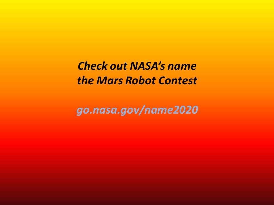 In case you missed it, NASA is doing a ‘Name the Mars 2020 Rover’ challenge contest for kids in grades K through 12th grades. The child must also be a student within the United States to enter (this includes public, private and home school students). Students will select a rover name and write a short (150 words or less) essay to explain their reason for selecting the name they chose.