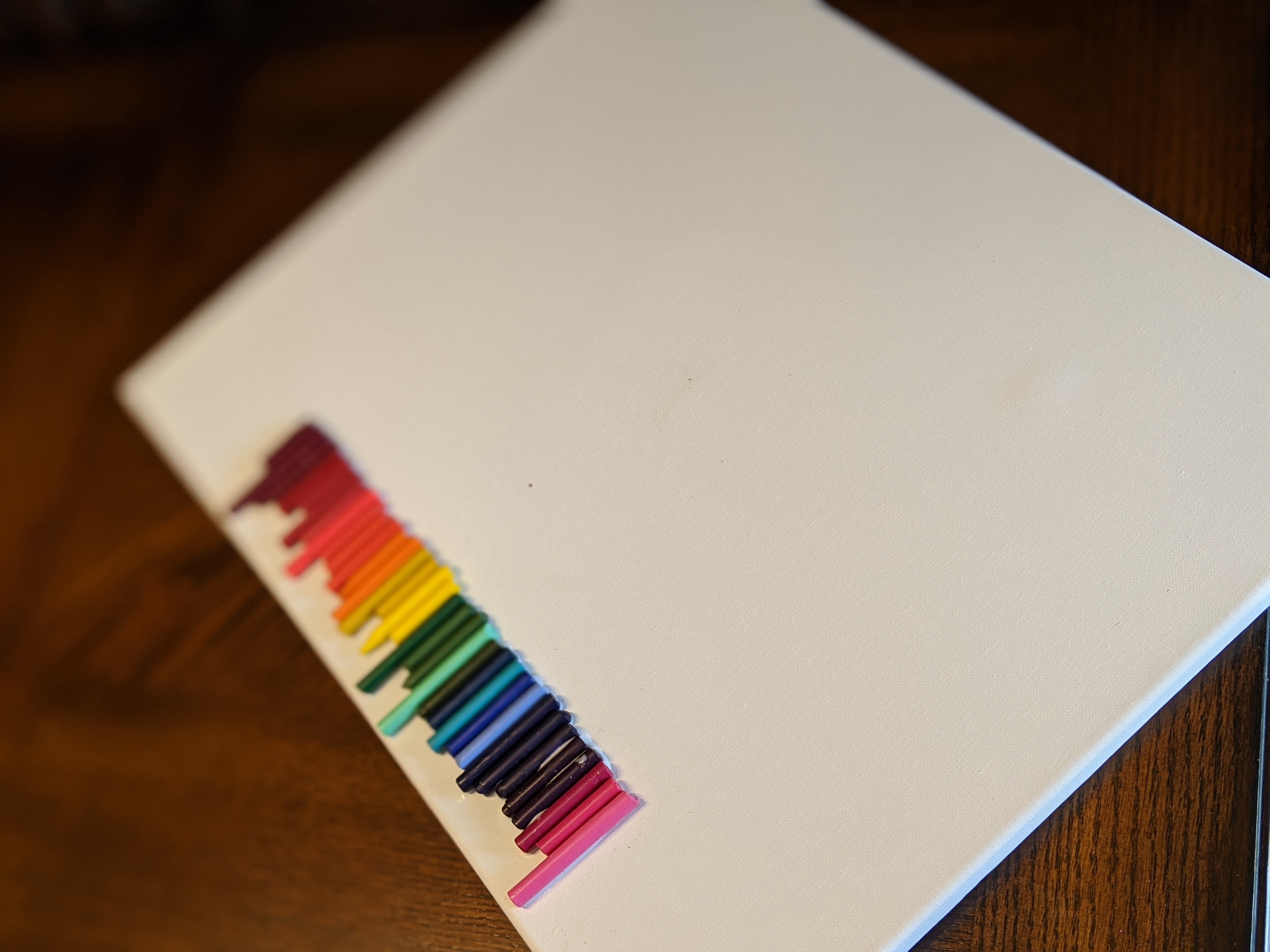 - Arrange the canvas upright so that the crayons point towards the empty space.
