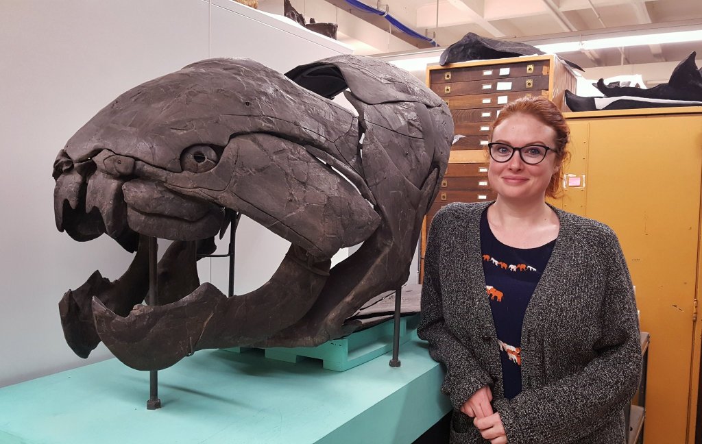 Dr. Colleary: I just started at the CMNH in January, so I’m still learning about all of the really cool ancient animals that we find here in Cleveland. So those are my favorite exhibits right now. I spend a lot of time looking at the giant, armored fish and sharks  and want to know more about them. The exhibit at the museum is also something I think about a lot because it hasn’t been updated since probably the 1970s and I like to come up with new ideas of what we should put on display and what cool new stuff we can tell people about.