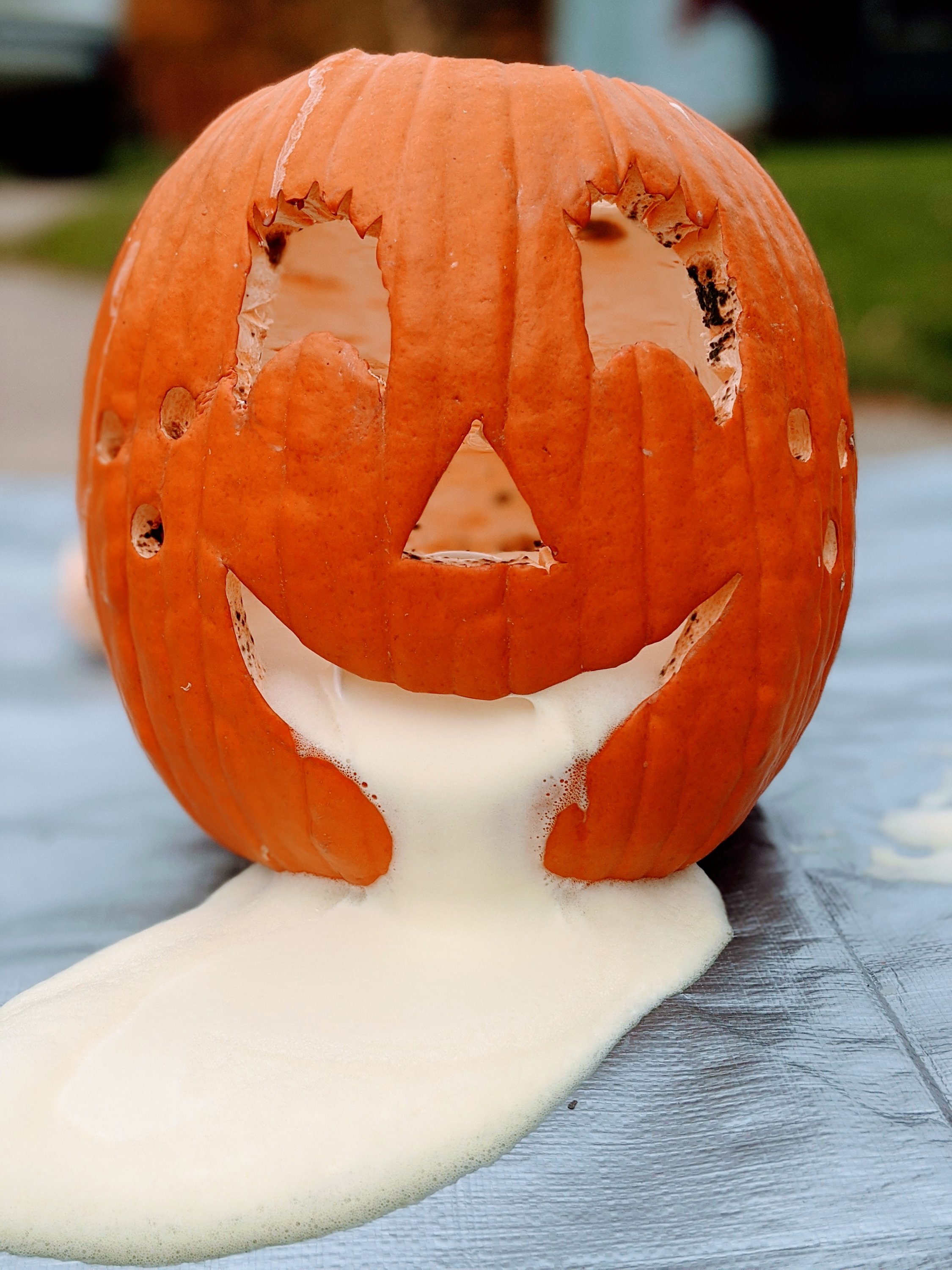 We recently made our spooky Jack-O-Lantern’s foam from the mouth and the kids LOVED it.