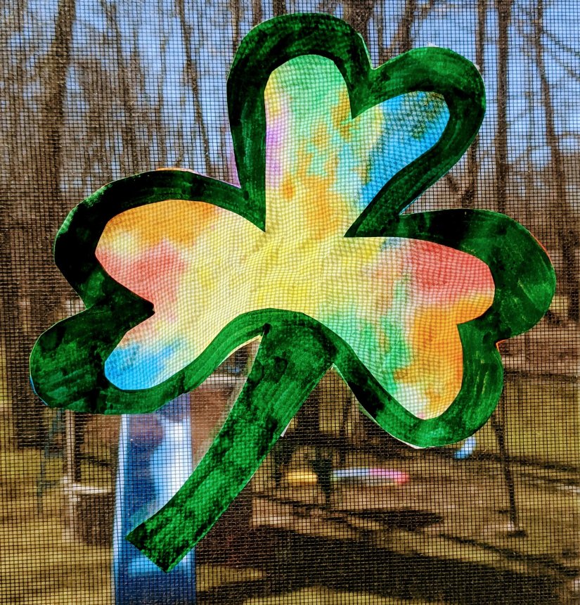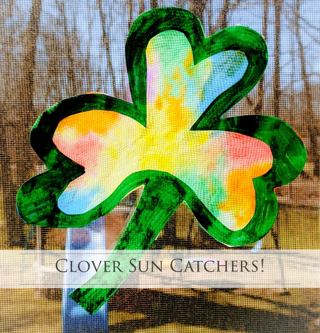 - Use the construction paper to cut out a frame for your sun catcher. We made clovers to honor Saint Patricks Day.