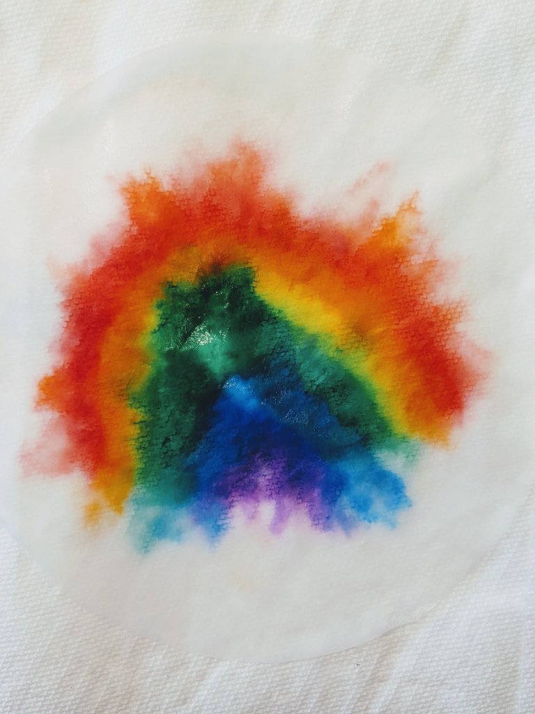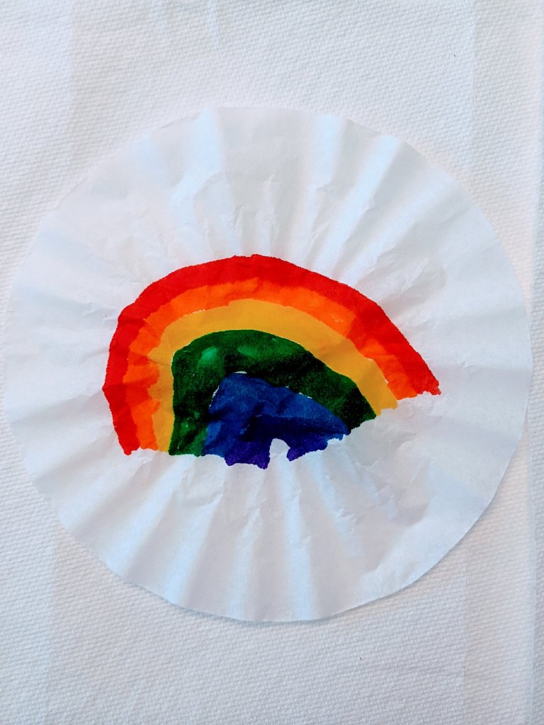 - Use various colors to make either a rainbow or other colorful design on the coffee filter. (Be sure the coffee filter is filled with enough color to fill your frame.)