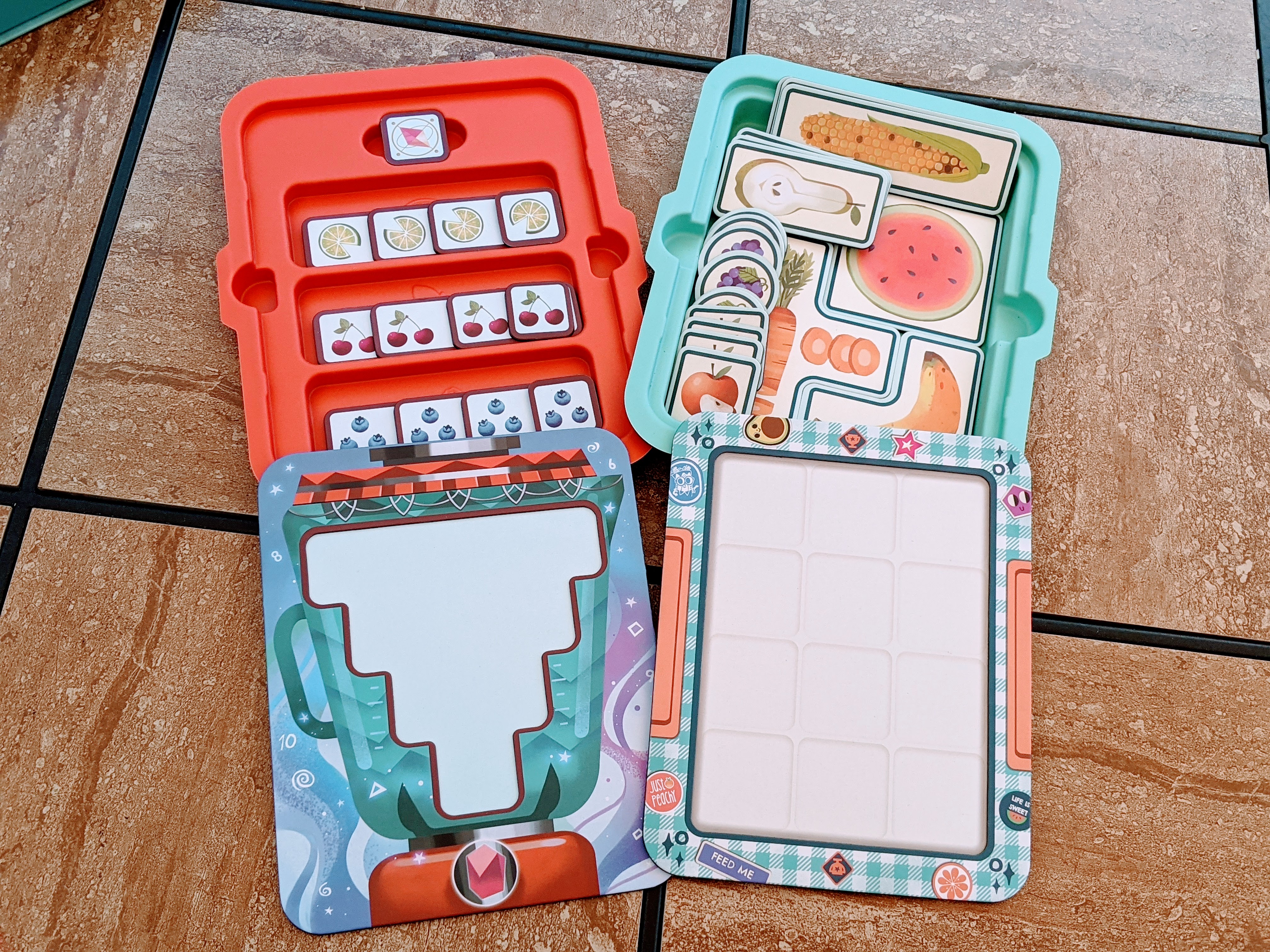 Juice Box is similar to Bento Box, except the games are team games! Children create a magical juice with the provided fruit strips using the right combination of numbers to hit the correct total. In between, they play mini games (like soccer, baseball, basketball, and relay racing) to help their team win!