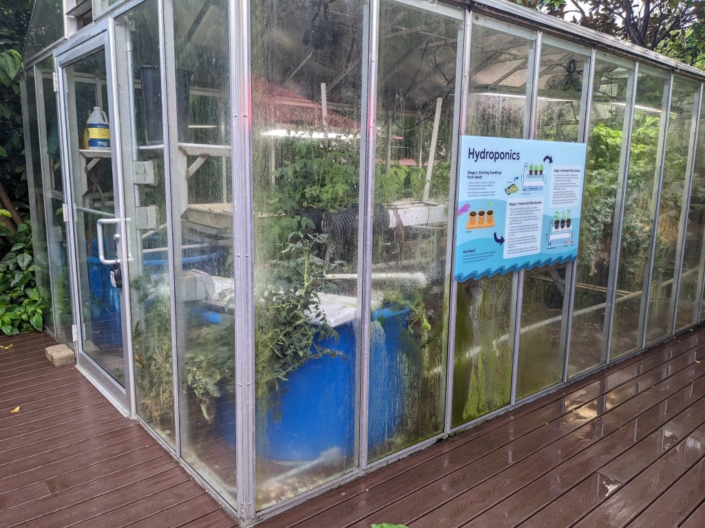 Fourth, the food options are great! It’s not often that you find a zoo with healthier food options. We ended up stopping for lunch at Base Camp, which is right by Hippo Cove. Here is the menu. I shared the Cranberry and Herb Chicken Salad, which was delicious. The kids shared the chicken tenders and the chicken was really delicious. When we were finished eating, I noticed that there was green house right next door growing lots of fresh vegetables. Base Camp was also rated one of the greenest restaurants by the Green Restaurant Association.